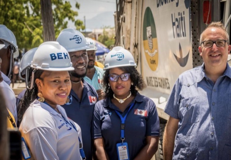 Début d’une importante collaboration avec Biothermica technologies, Inc. qui mènera, tant en Haïti qu’au Togo, à un grand programme de gestion durable de déchets qui, 15 ans plus tard et après des financements de IUCN, et le Programme de coopération climatique internationale du Québec, aura une trentaines d’employés en Haïti et au Togo sous les bannières Bioénergie Haïti (BEH) et Bioénergie Togo (BET). Ci-dessous, le Président de Terre des jeunes Gonaïves, Dieuseul Augustin, avec l’équipe de direction de BEH et l’Ambassadeur du Canada en Haïti, Sébastien Carrière, 12 ans plus tard en 2022.