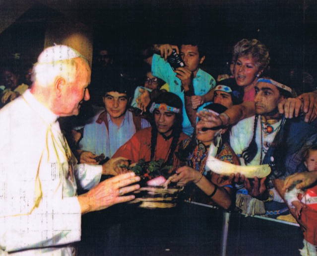 Rencontre du représentant de Terre des jeunes, Riel Huaorani, avec le Pape Jean-Paul II.