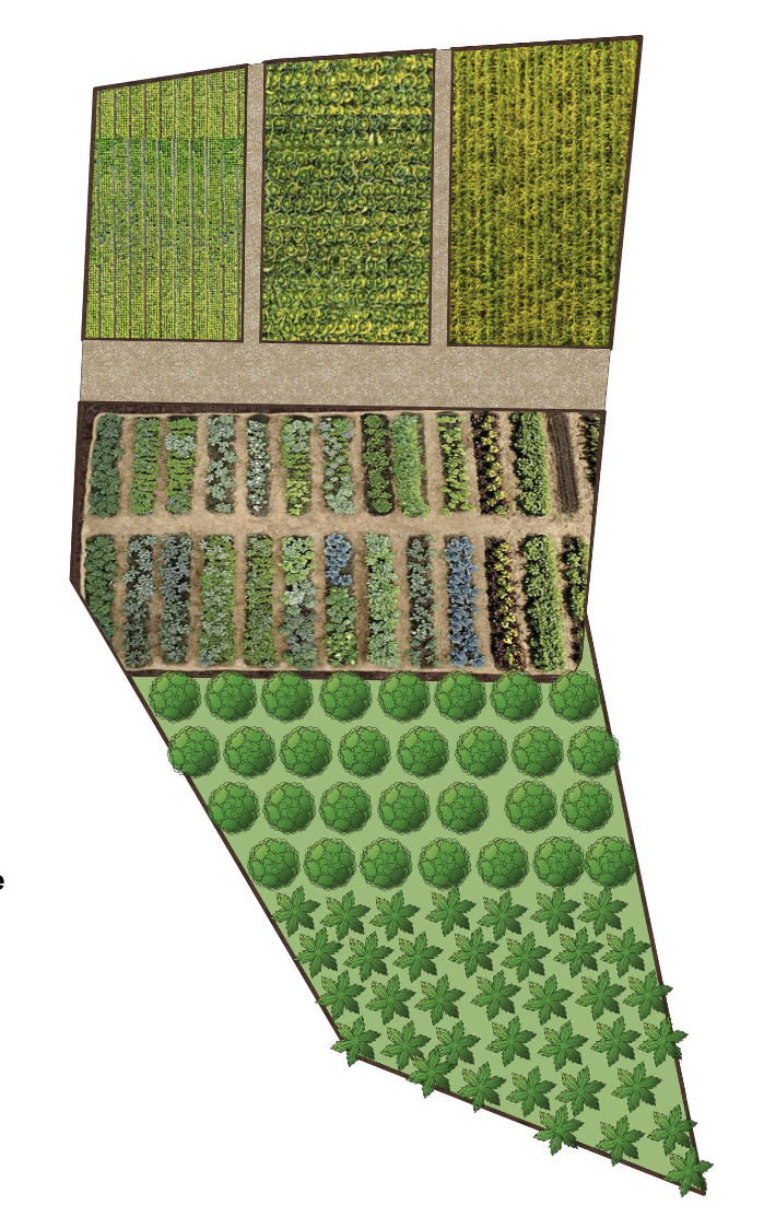 La synécoculture est une méthode de plantation dense et mixte qui imite les cycles naturels, minimisant les apports externes, le recours au labour, à la fertilisation et aux pesticides; tout en maximisant la productivité et le nombre de récoltes.